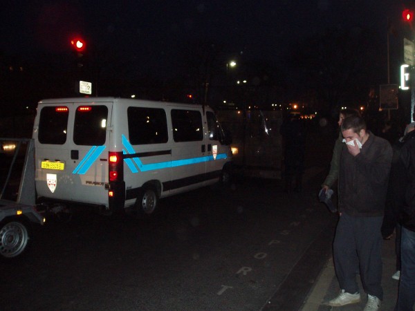 After an hour or so you could tell something was building up. A group of people went a short way down one of the many streets and it was on. Stuff being thrown at the police who were all dressed up in riot gear - helmets, big sticks, shields, and body armour on their shoulders, arms & legs. Then came the flares, and a car got turned over and set alight. Shop widows started to be smashed. It was on. I was standing on a hill about 200-300 metres away. Most of the people there were just watching and the troublemakers were only a small group (about 100-200 people).