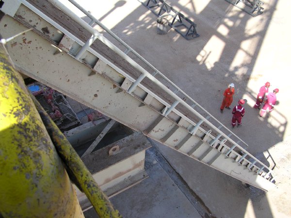 Here's a picture of the ramp which goes up from the ground level to the V-door. All of the drill pipes are dragged up this ramp. It also shows how high off the ground the rig floor is.