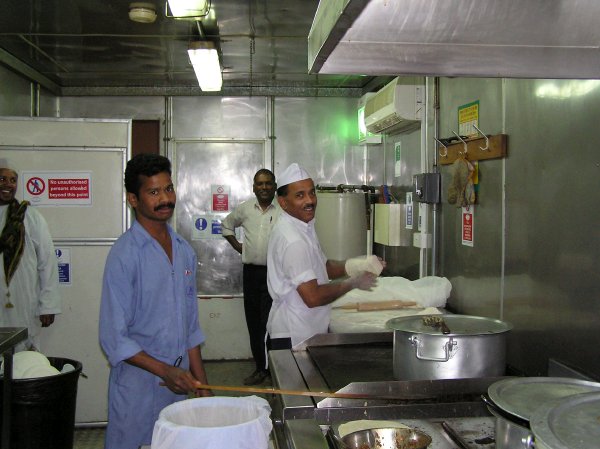 Just so you don't think that the Indian influence has escaped this most sacred of feasts, here's the rig kitchen where the Indian chef is preparing the paratha bread for the festivities. By god I love this stuff! I literally go few days without my paratha.