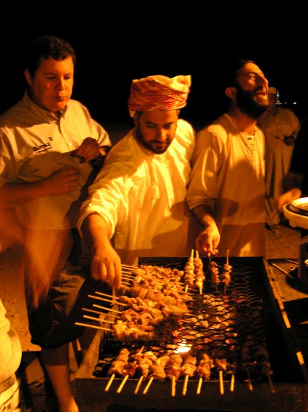 Here we're cooking the mishakik on the BBQ. From the left is me, then a guy from the rig crew, then DJ, Salim, Ali (a different one) and another guy from the rig. DJ, Salim and Ali from this picture work in the same department as me, but they're based in Muscat (the capital of Oman). DJ stays at the same staff house as I do when I'm in Muscat and he's always up for a night out on the town.