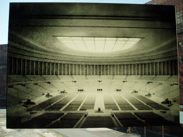 This is a picture which was on the wall showing one of the big speaking halls. You can just imagine it filled with people and Hitler's voice booming from the loud speakers.