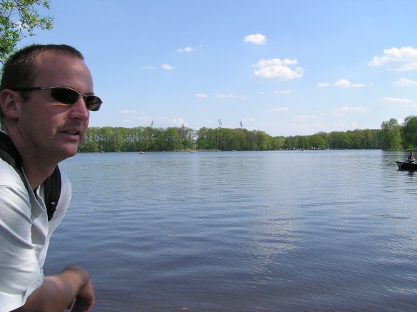 On the other side of the lake there was an amazing beer garden, which was like a dozen smaller beer gardens all made into one. There were tables, chairs, sofas with big cushions, deck chairs, sun umbrellas, shady trees, loads of individual bars, different food huts in all different styles (Asian, Italian, German, etc...); it was great. And it was LOADED with people! You could hire roller blades, bicycles, paddleboats for the lake, shisha pipes; just about anything. For me it was like stepping into Thailand. Most of the fences and huts were made of bamboo in the South East Asian style. Unfortunately all the sofas and deck chairs were taken when we arrived, so we got to sit in an out of the way corner, but it was still lovely.
