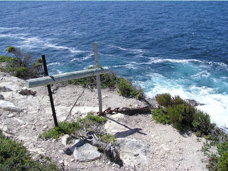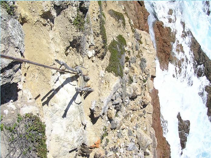 To get to the swimming hole, you need to dangle precariously down a smooth plastic coated rope hanging over a cliff, and once you reach the end of the rope, you climb down a hand made (as opposed to well made) wooden ladder. After this, you simply skirt the base of the cliff on a narrow ledge approximately 100m in length and made up entirely of loose fallen rocks. Simple really, if you're a chimp with a steel skull to deflect any falling rocks from above.
