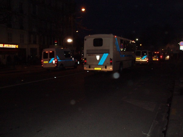 After an hour or so you could tell something was building up. A group of people went a short way down one of the many streets and it was on. Stuff being thrown at the police who were all dressed up in riot gear - helmets, big sticks, shields, and body armour on their shoulders, arms & legs. Then came the flares, and a car got turned over and set alight. Shop widows started to be smashed. It was on. I was standing on a hill about 200-300 metres away. Most of the people there were just watching and the troublemakers were only a small group (about 100-200 people).
