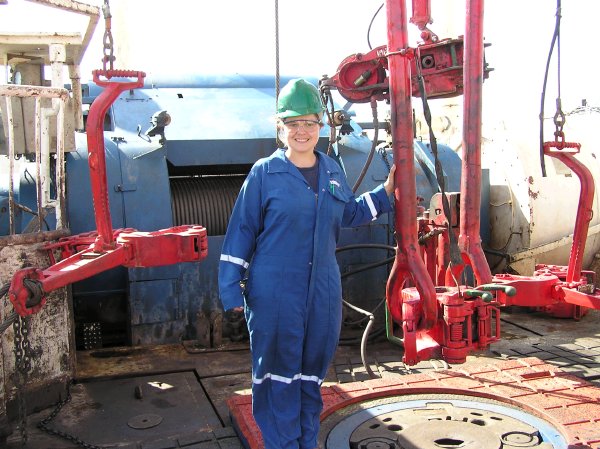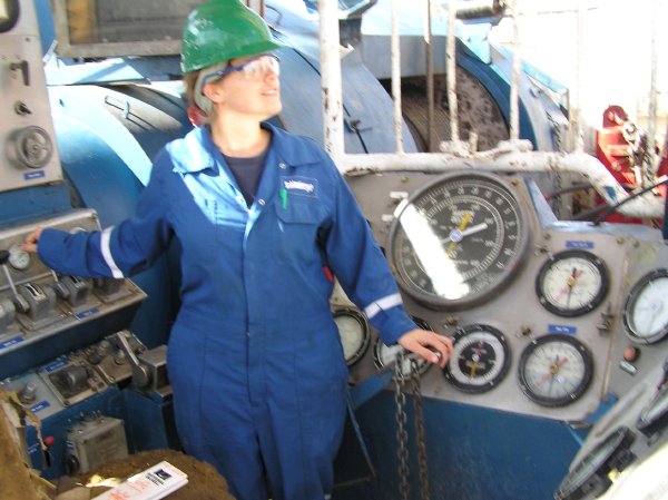 Here's me standing next to the rotary table, the round bit on the floor where the drill pipe actually goes through.