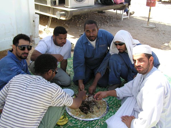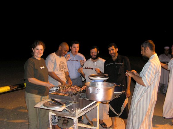 Here we're cooking the mishakik on the BBQ. From the left is me, then a guy from the rig crew, then DJ, Salim, Ali (a different one) and another guy from the rig. DJ, Salim and Ali from this picture work in the same department as me, but they're based in Muscat (the capital of Oman). DJ stays at the same staff house as I do when I'm in Muscat and he's always up for a night out on the town.
