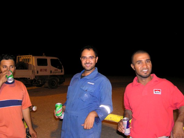 The rig guys tried in earnest to get me to try their shisha, but to no avail. It took a long time to explain that I just don't smoke. I did however consent to a photo with them and the shisha.