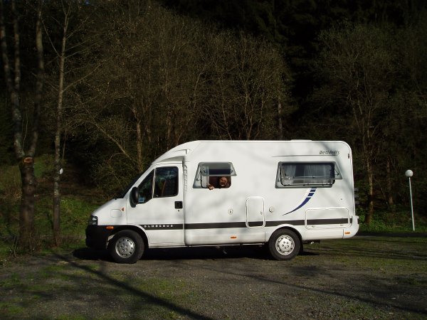 The first night out of Berlin we stopped at the sports field in a small town called Schkieditz, and the second night we stopped at a place called Markt Pressig just inside the Frankenwald Nature Park. It was here that we finally remembered to take a picture of our bus for the website. Here she is!