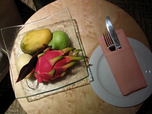 The hotel we stayed at in Malaysia was REALLY fancy. I had a marble bathroom, a fancy oval shaped glass desk, a lovely king-sized comfy bed, the works! Every day they even delivered fancy tasty fruits to my room: which is a big plus for a fruit-loving maiden like myself. Here are some pictures of the rooms we all stayed in, places around our hotel, in and the tasty fruits.